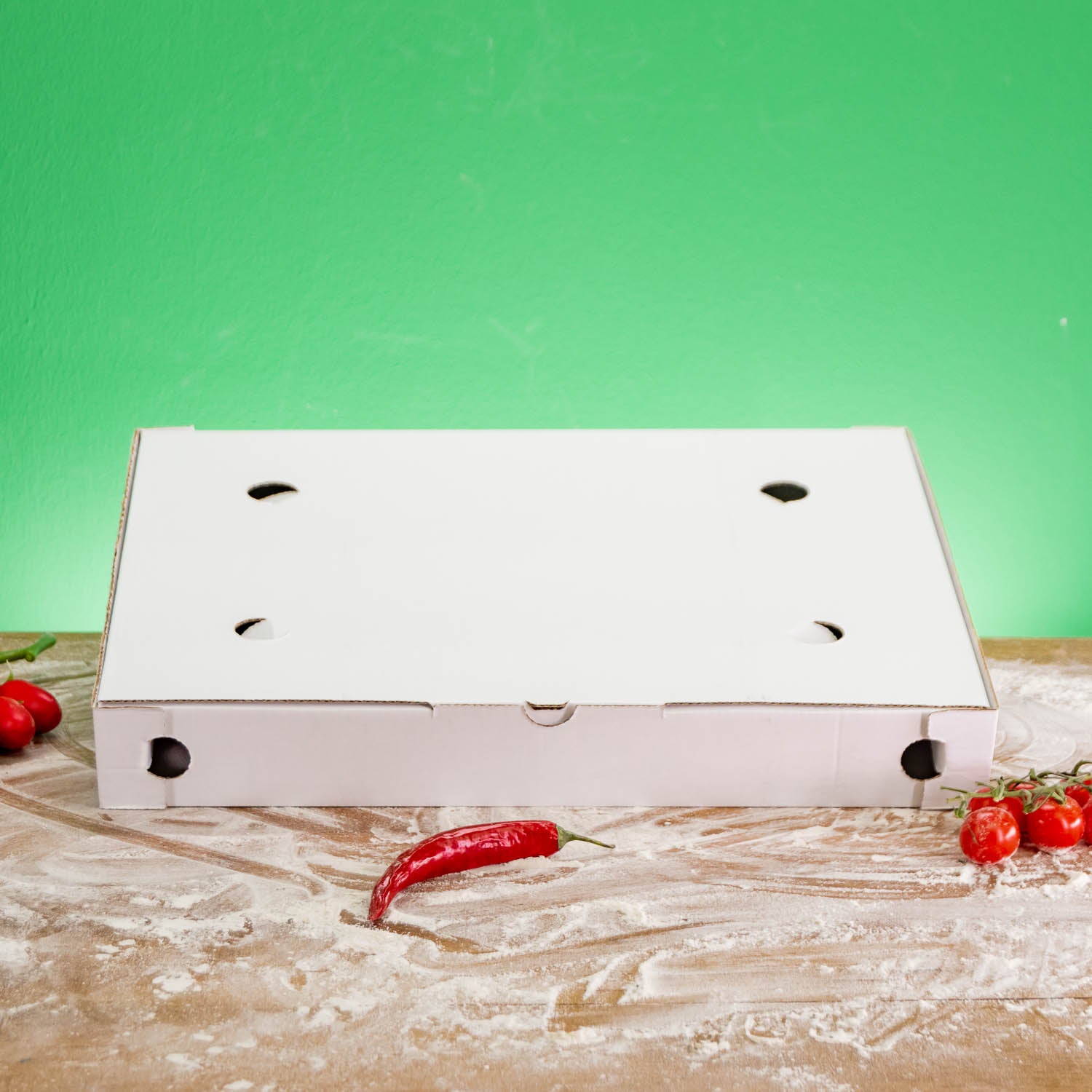 Puoi progettare tu stesso quasi l'intero coperchio della tua scatola per pizza . Puoi vedere le dimensioni esatte nel nostro configuratore online.
